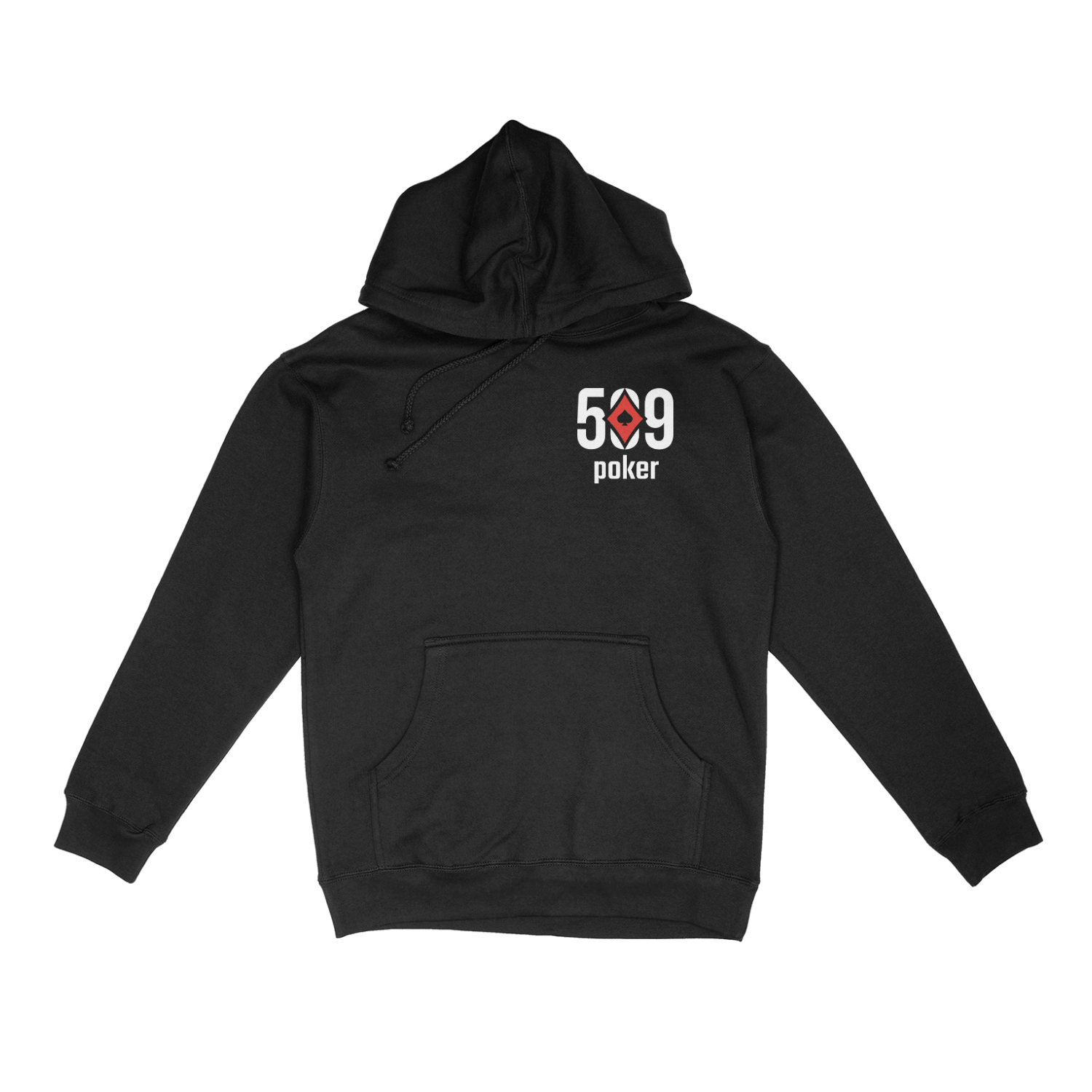 Stay warm and comfortable with this Heavyweight Hoodie featuring the flagship two-color 509 Poker left chest print. Made from thick, durable materials, it's perfect for enduring the elements outside of poker rooms while keeping you cozy during long wait times in air-conditioned environments. Soft and rugged, this hoodie combines comfort with resilience—ideal for any 509 fan.